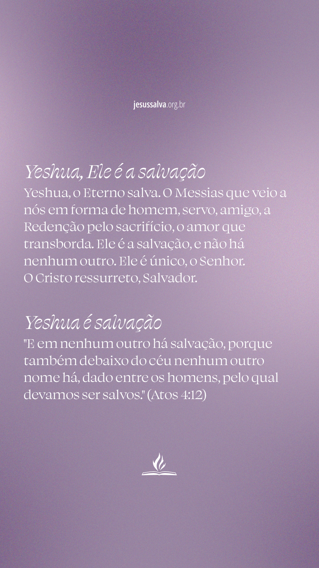 "E em nenhum outro há salvação, porque também debaixo do céu nenhum outro nome há, dado entre os homens, pelo qual devamos ser salvos." (Atos 4:12)