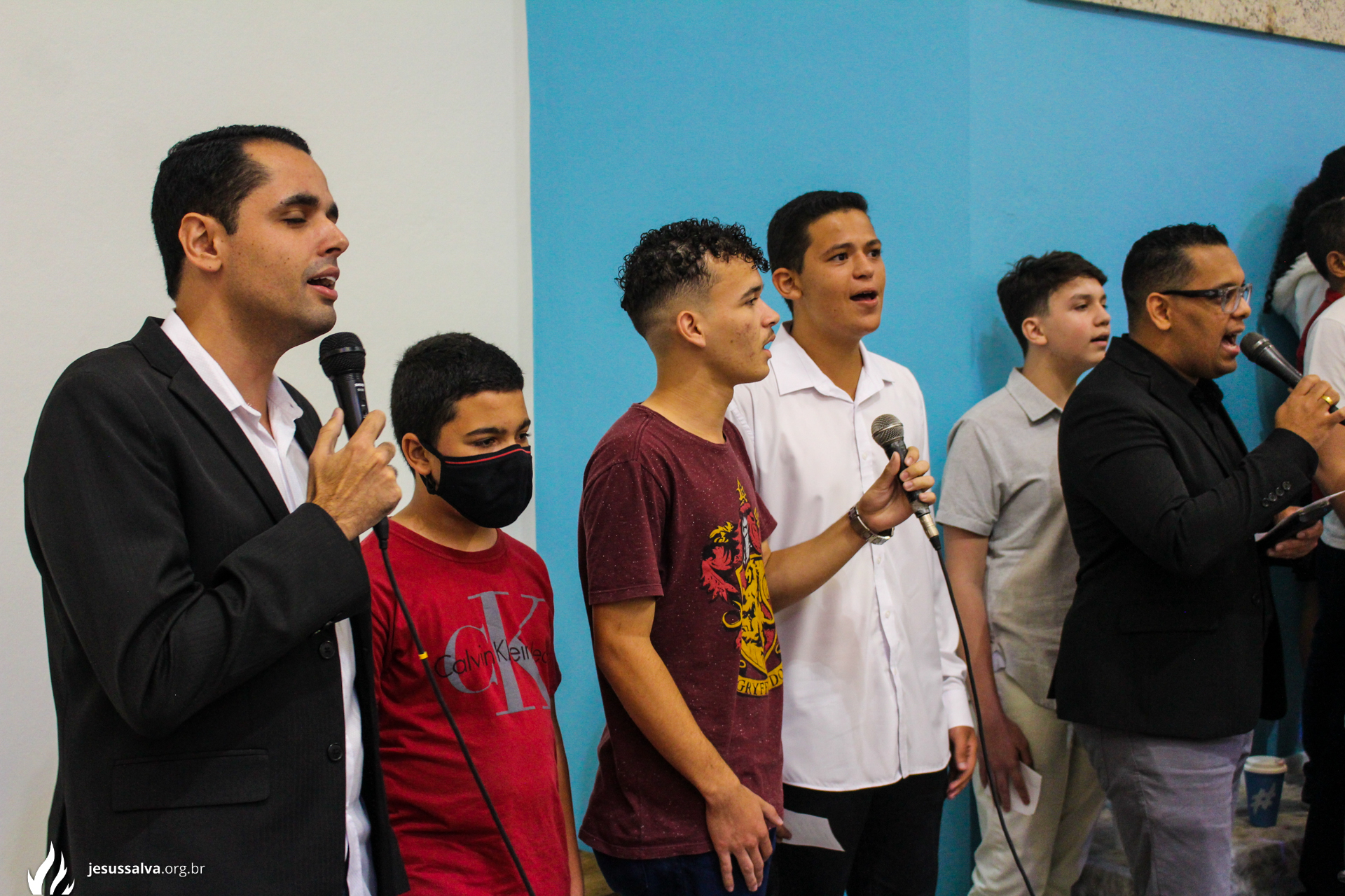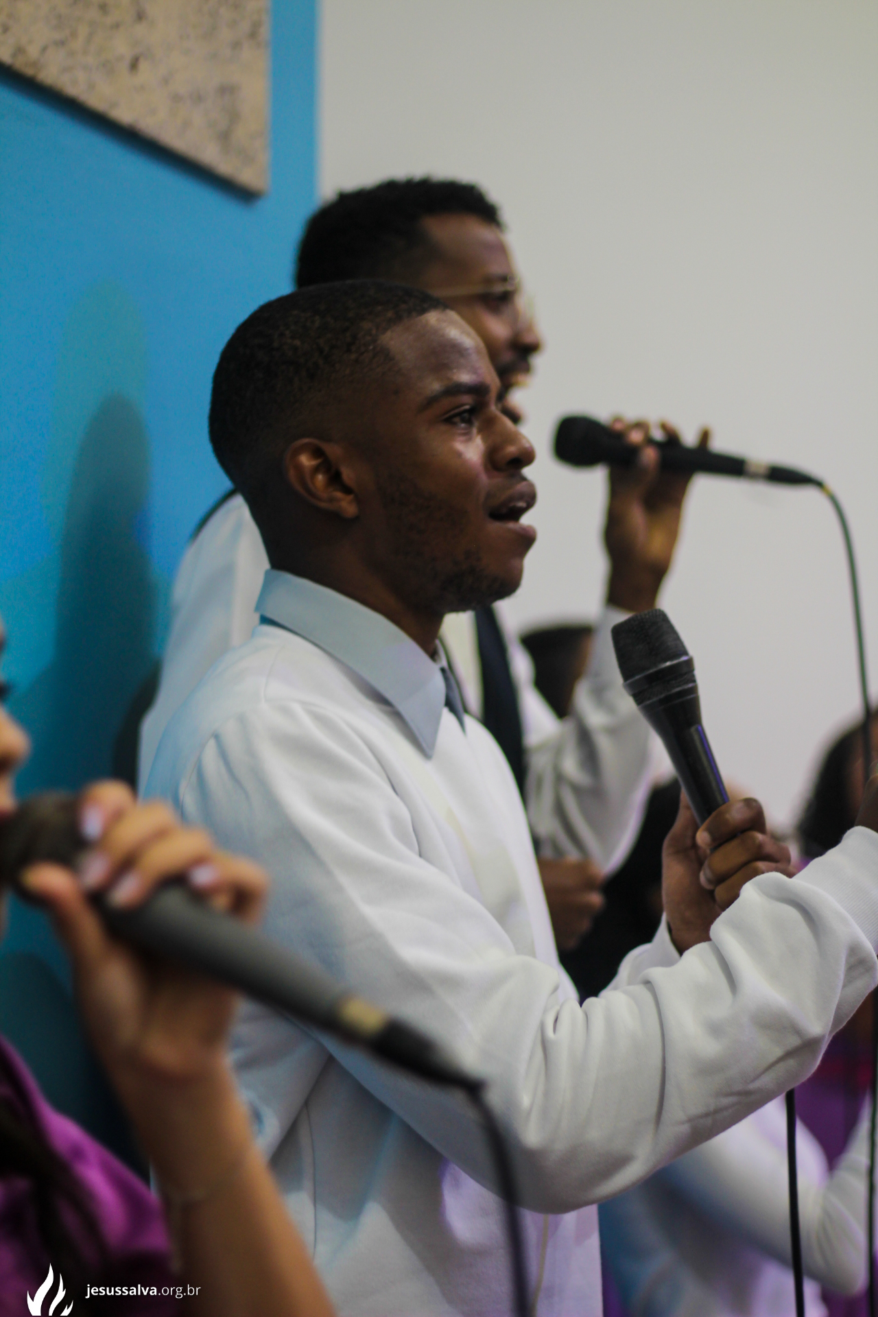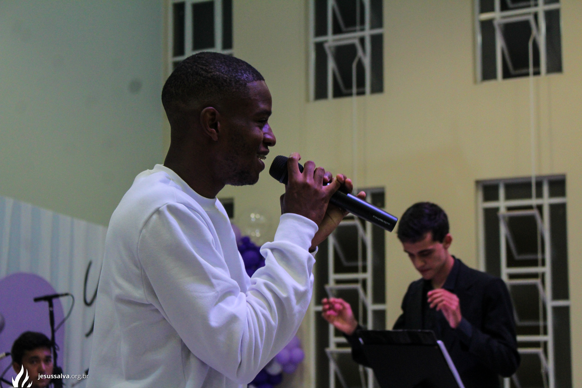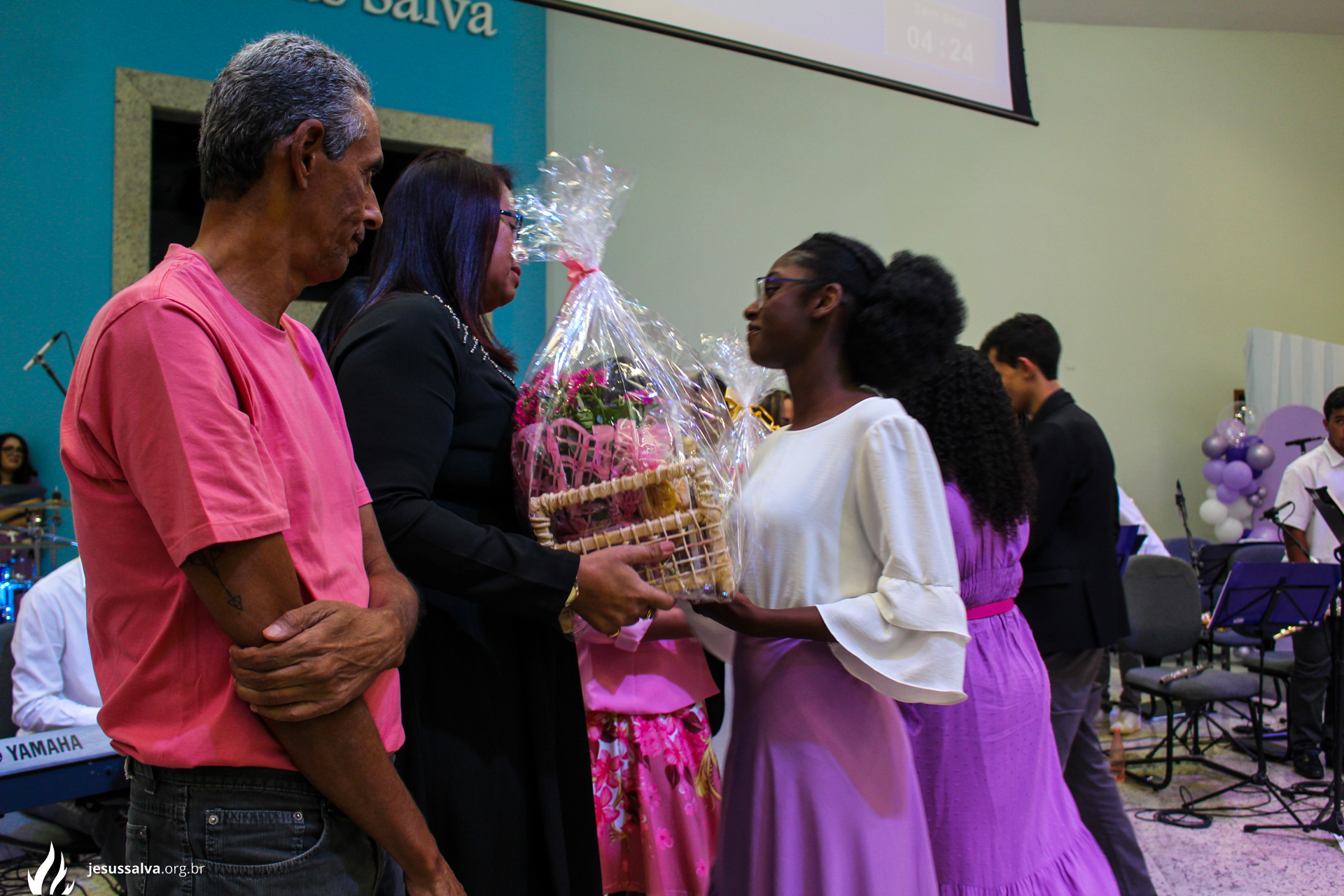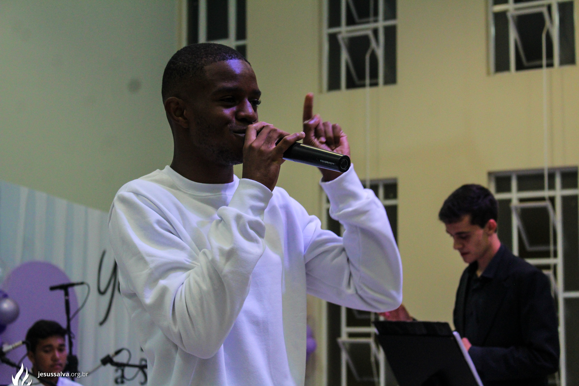 Os líderes do Departamento de Música Jairo FIlho e Felipe Adriano e o pastor presidente Orlando Dias de Souza agradecem aos irmãos que oraram e participaram da Cantata de Páscoa.