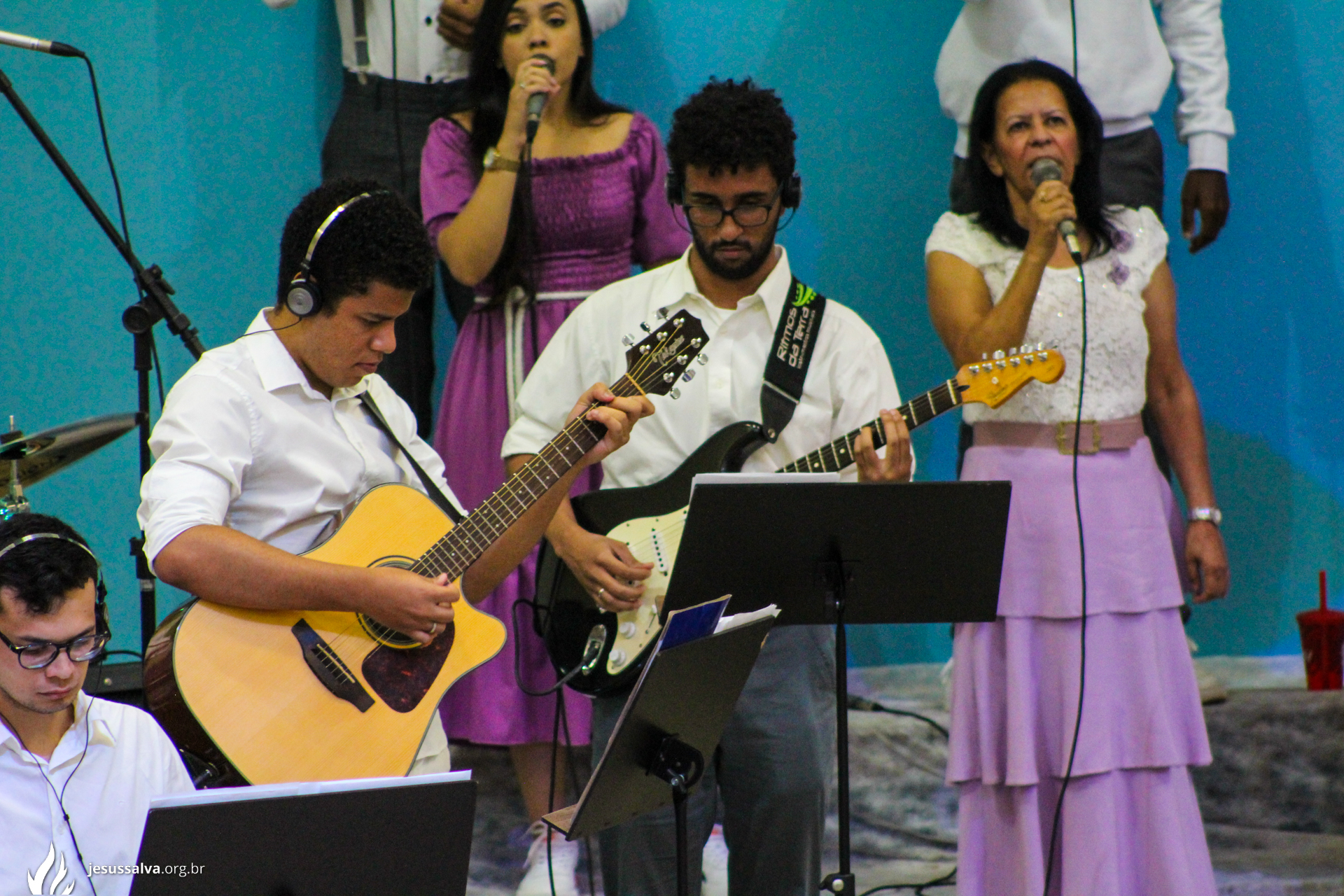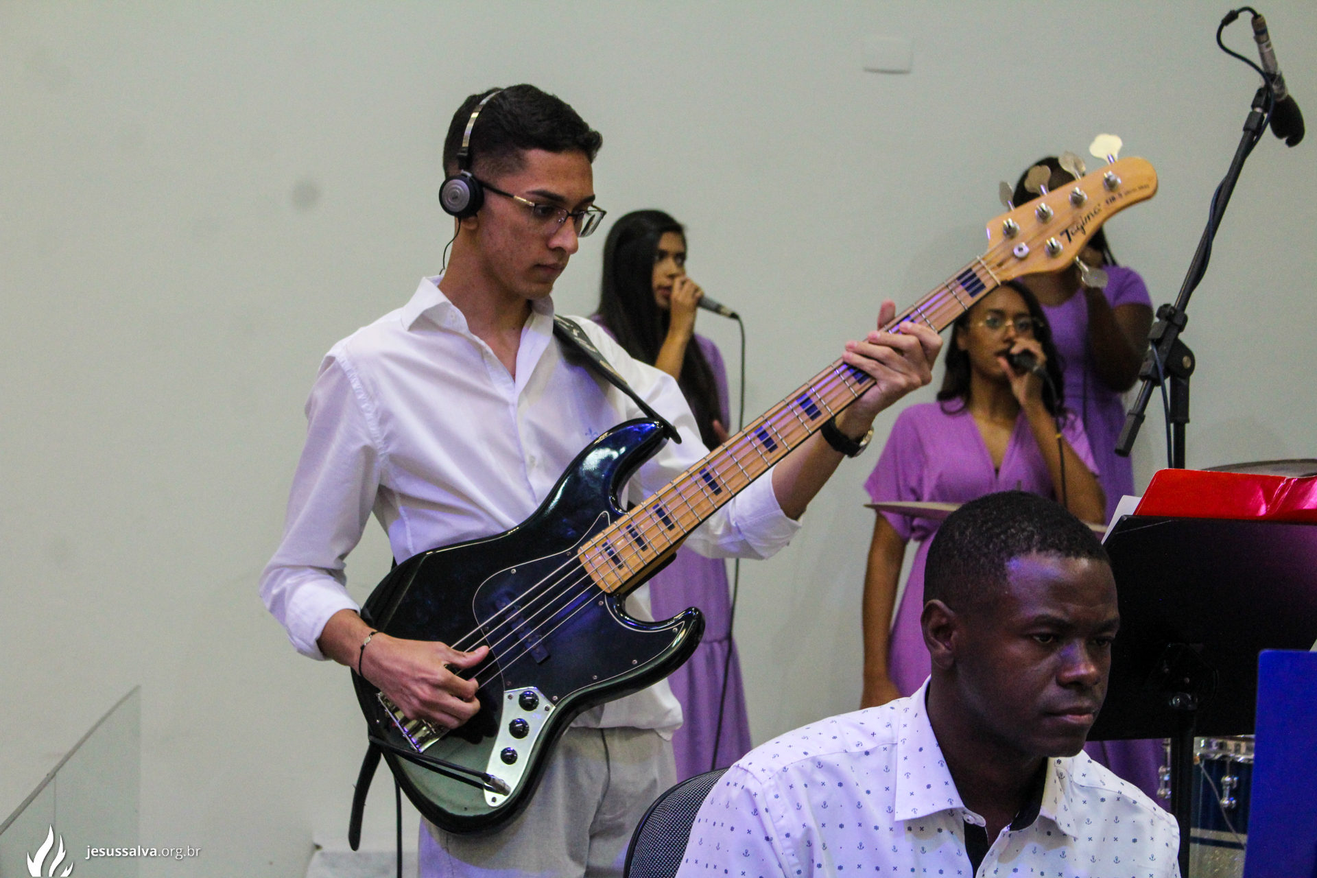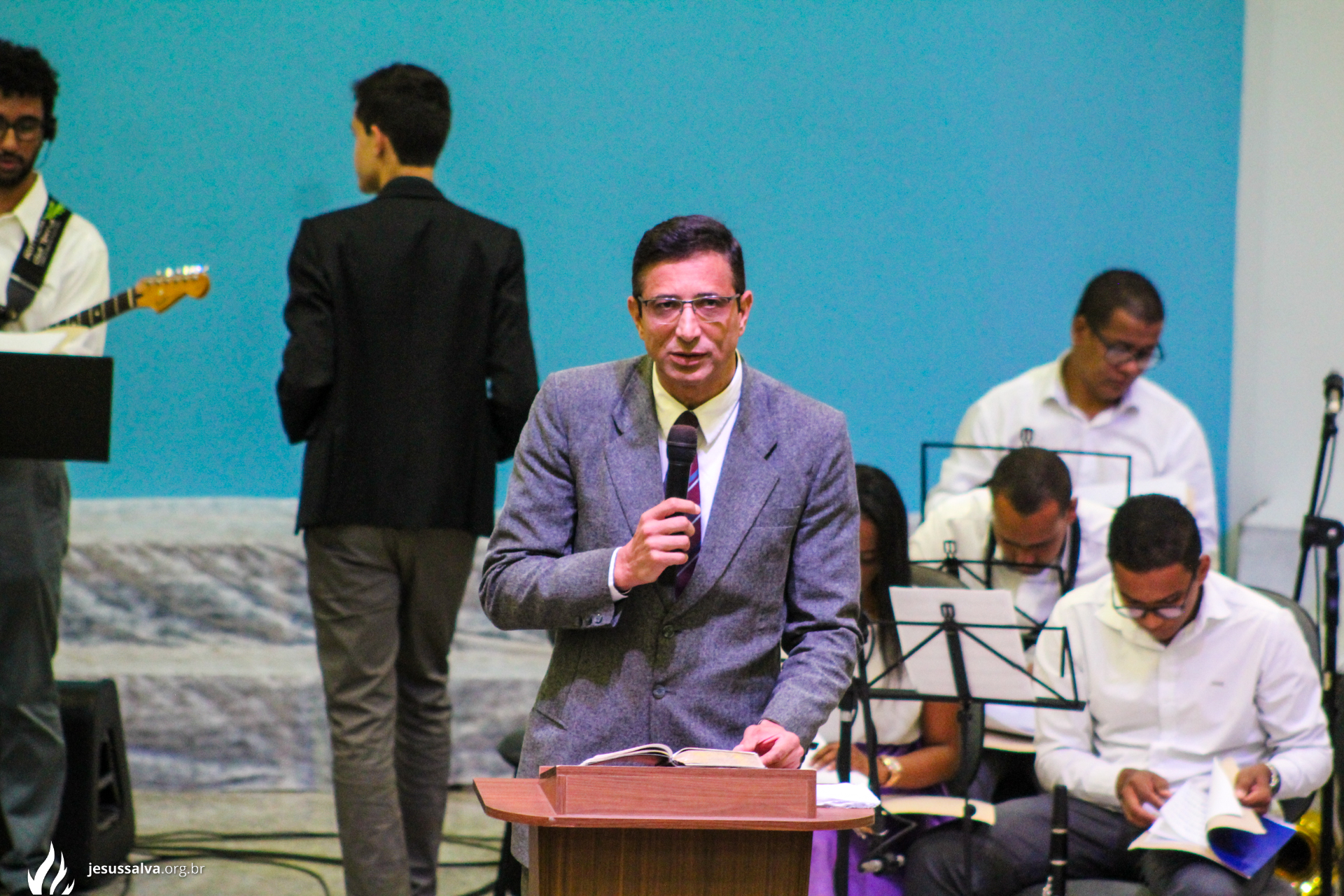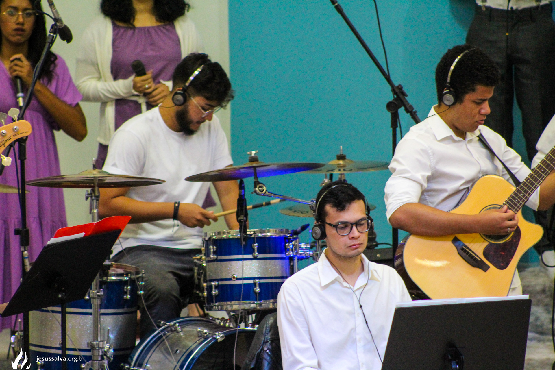 Os líderes do Departamento de Música Jairo FIlho e Felipe Adriano e o pastor presidente Orlando Dias de Souza agradecem aos irmãos que oraram e participaram da Cantata de Páscoa.