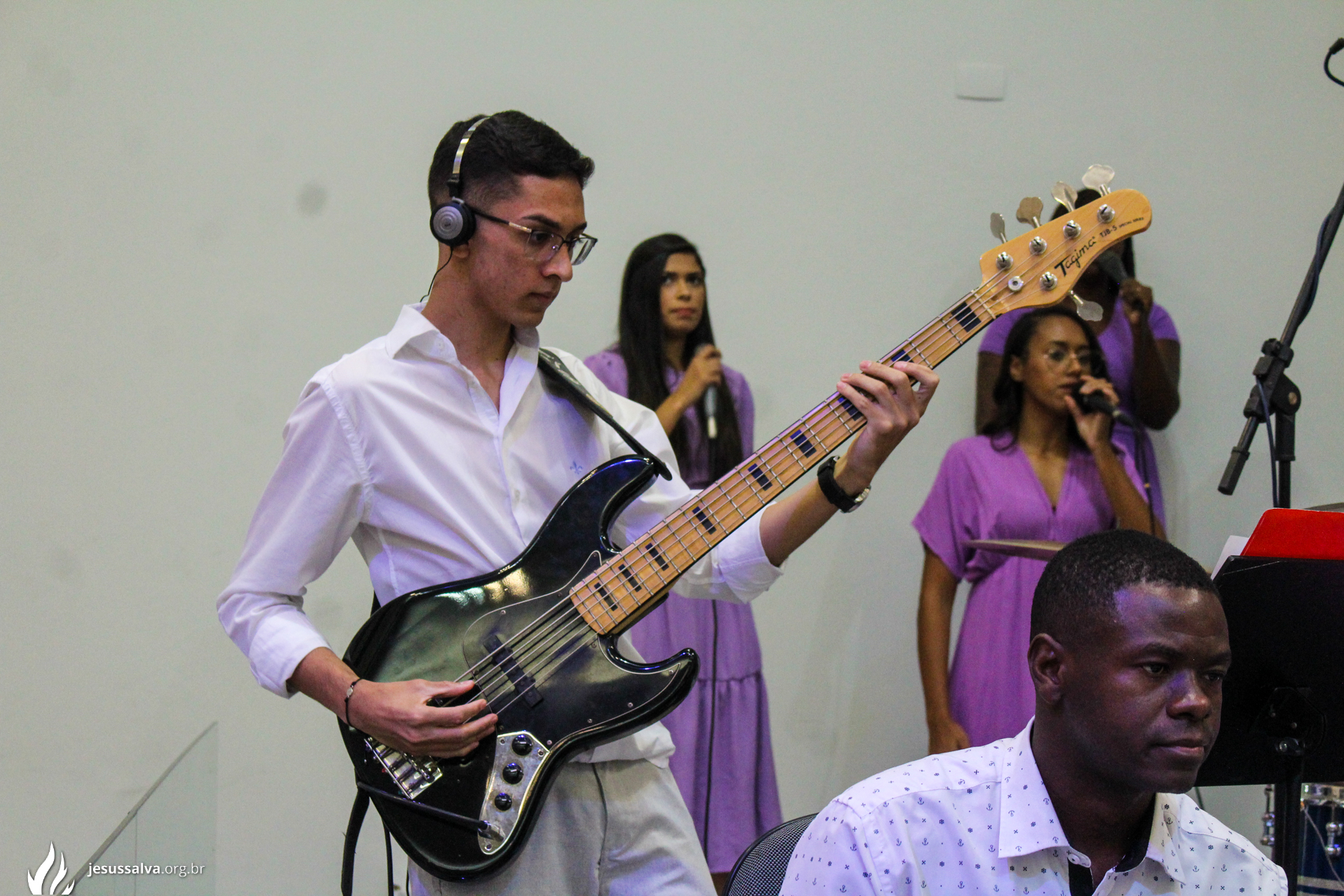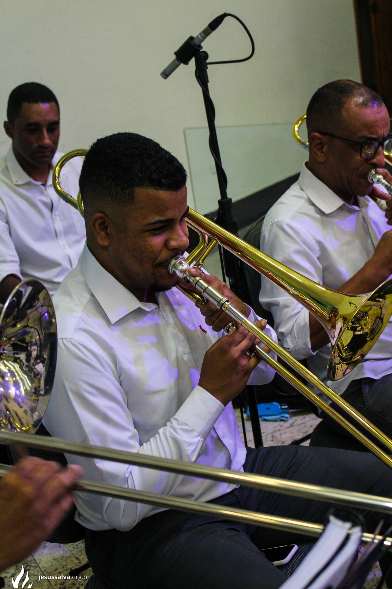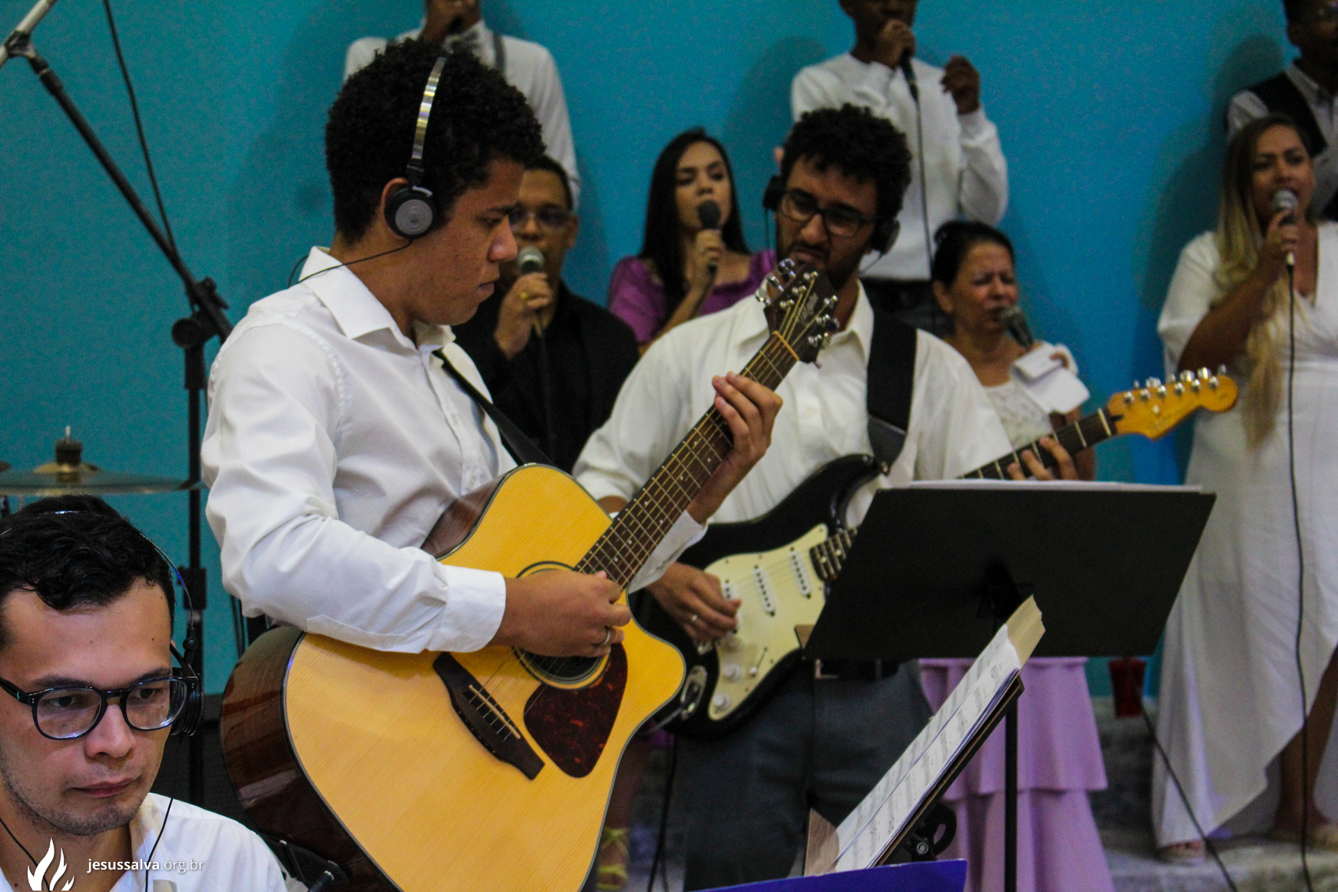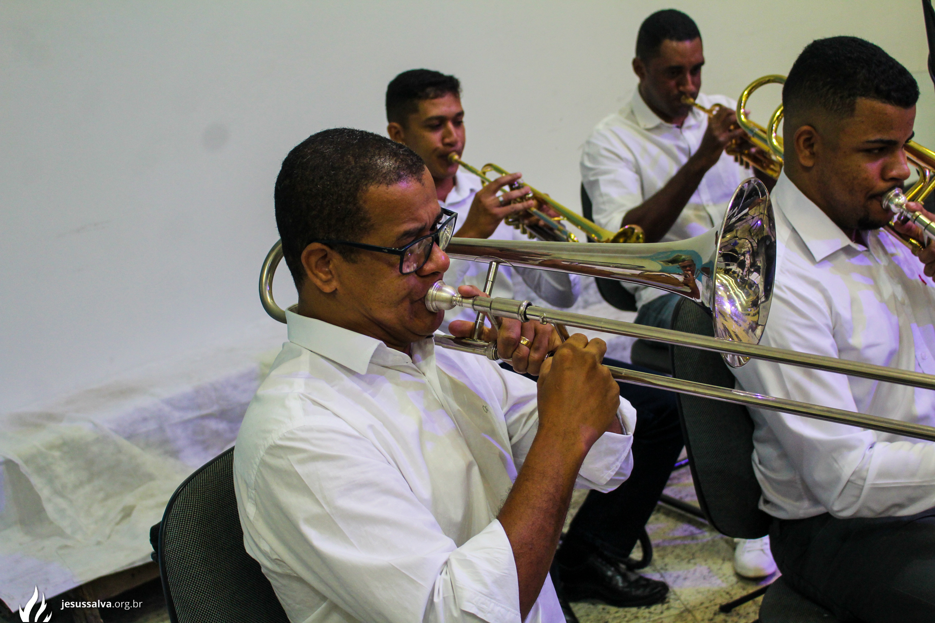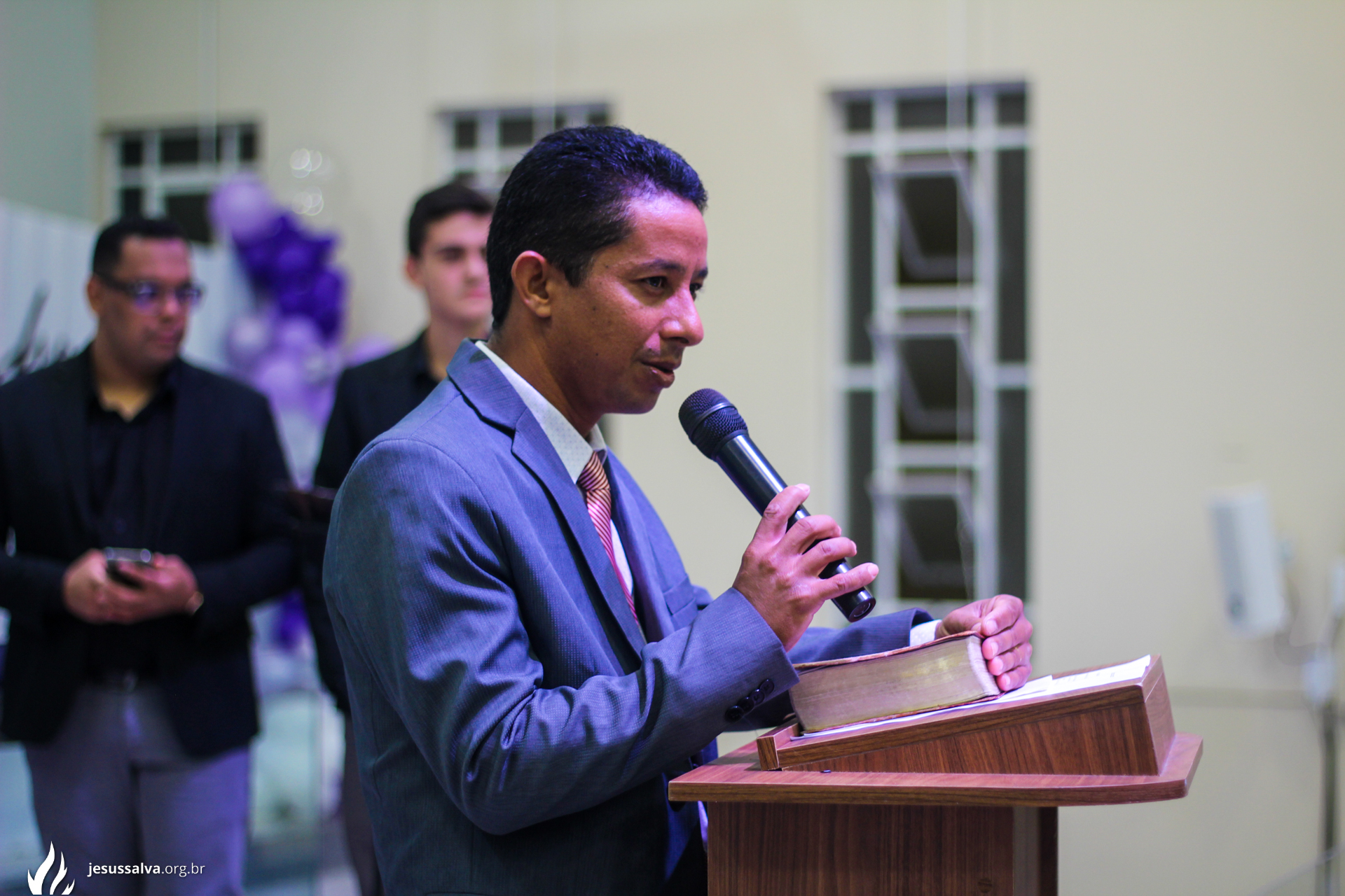 Os líderes do Departamento de Música Jairo FIlho e Felipe Adriano e o pastor presidente Orlando Dias de Souza agradecem aos irmãos que oraram e participaram da Cantata de Páscoa.