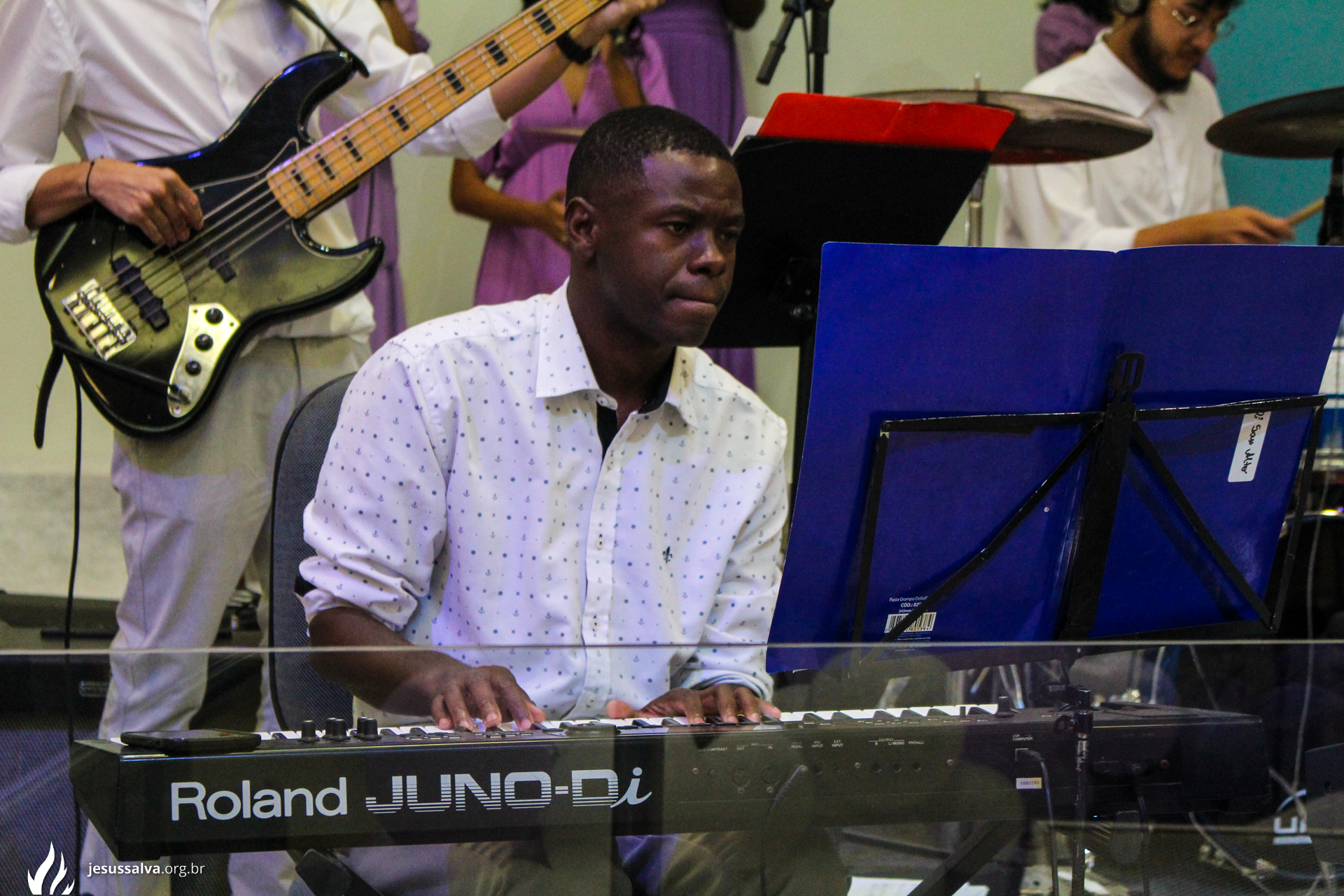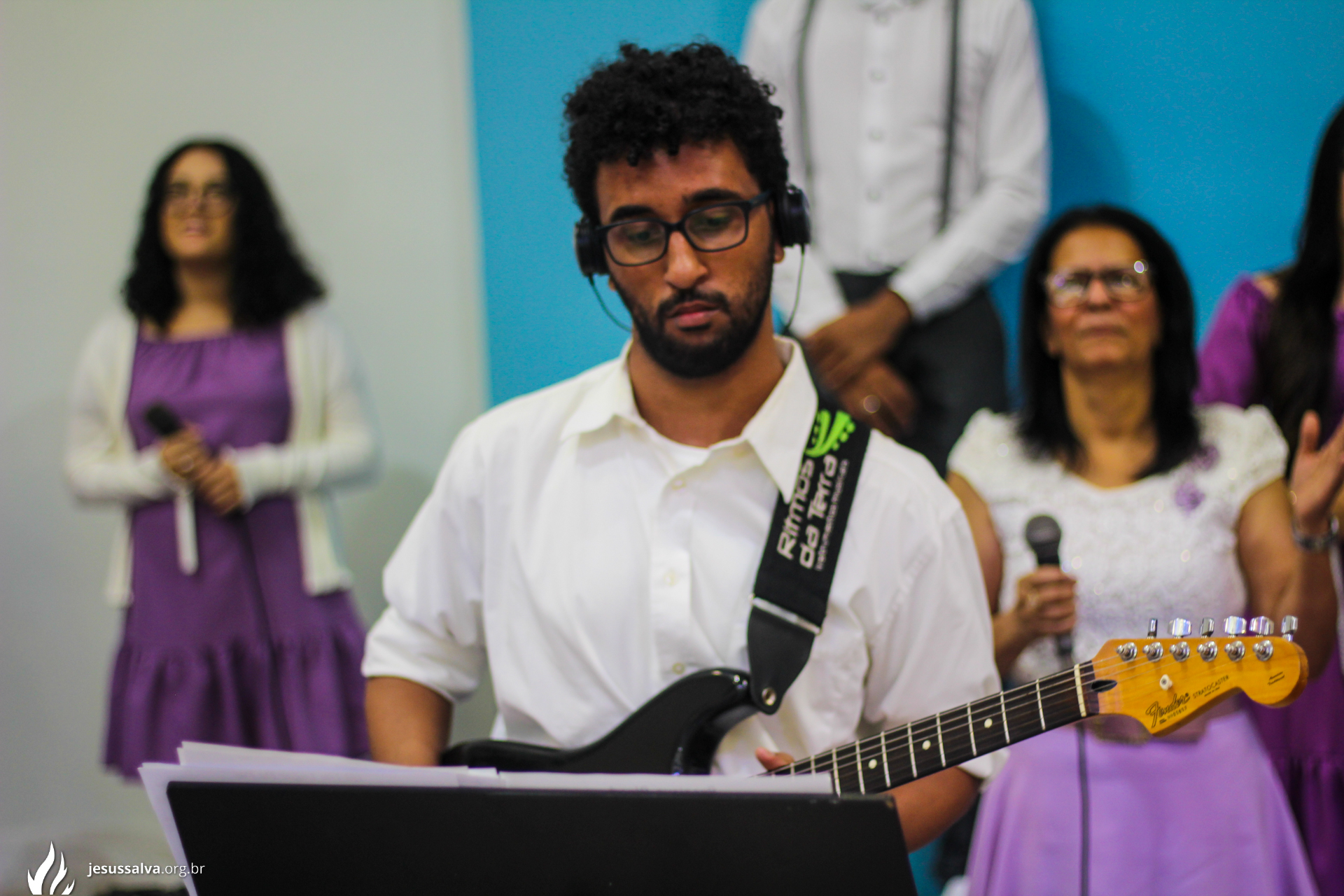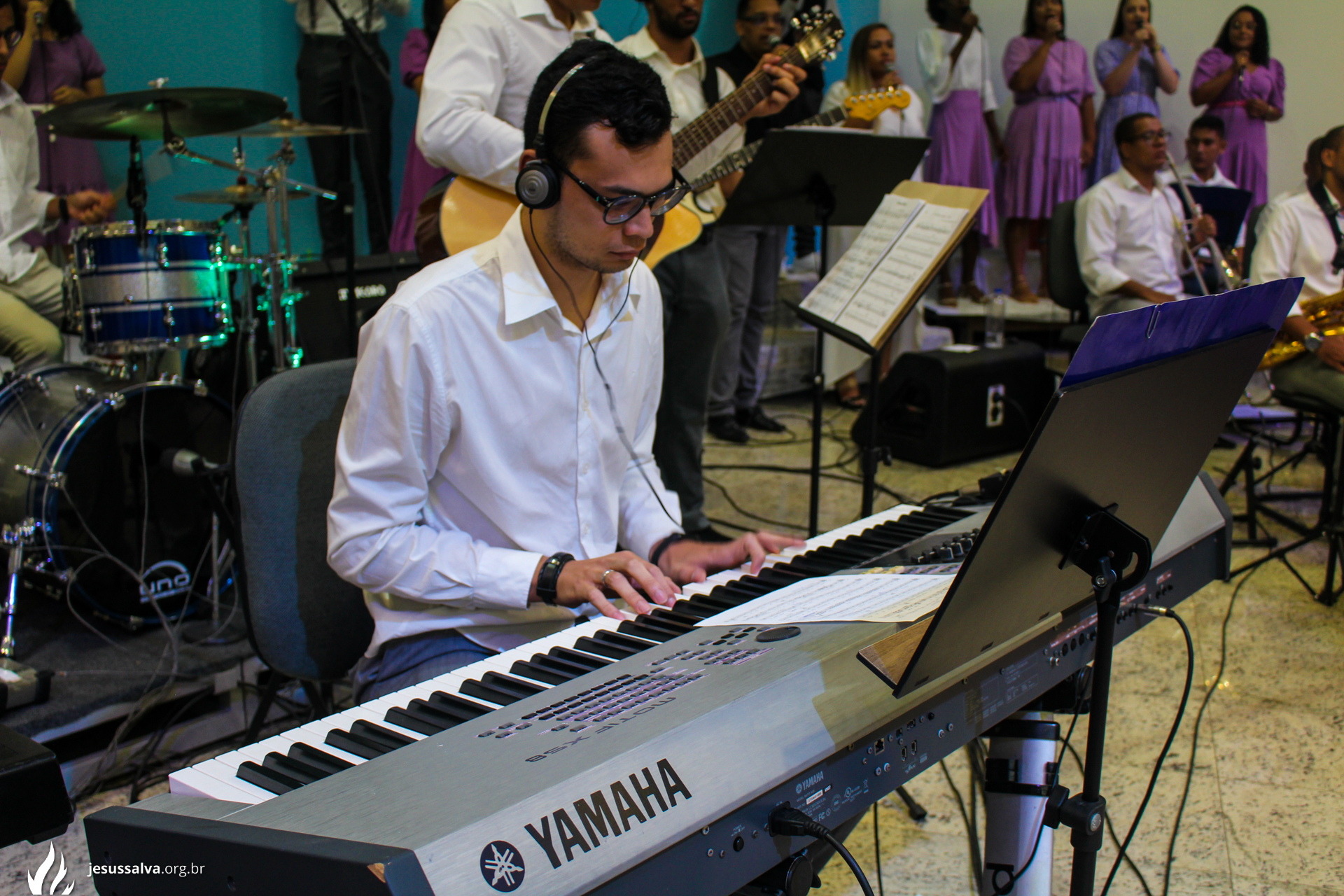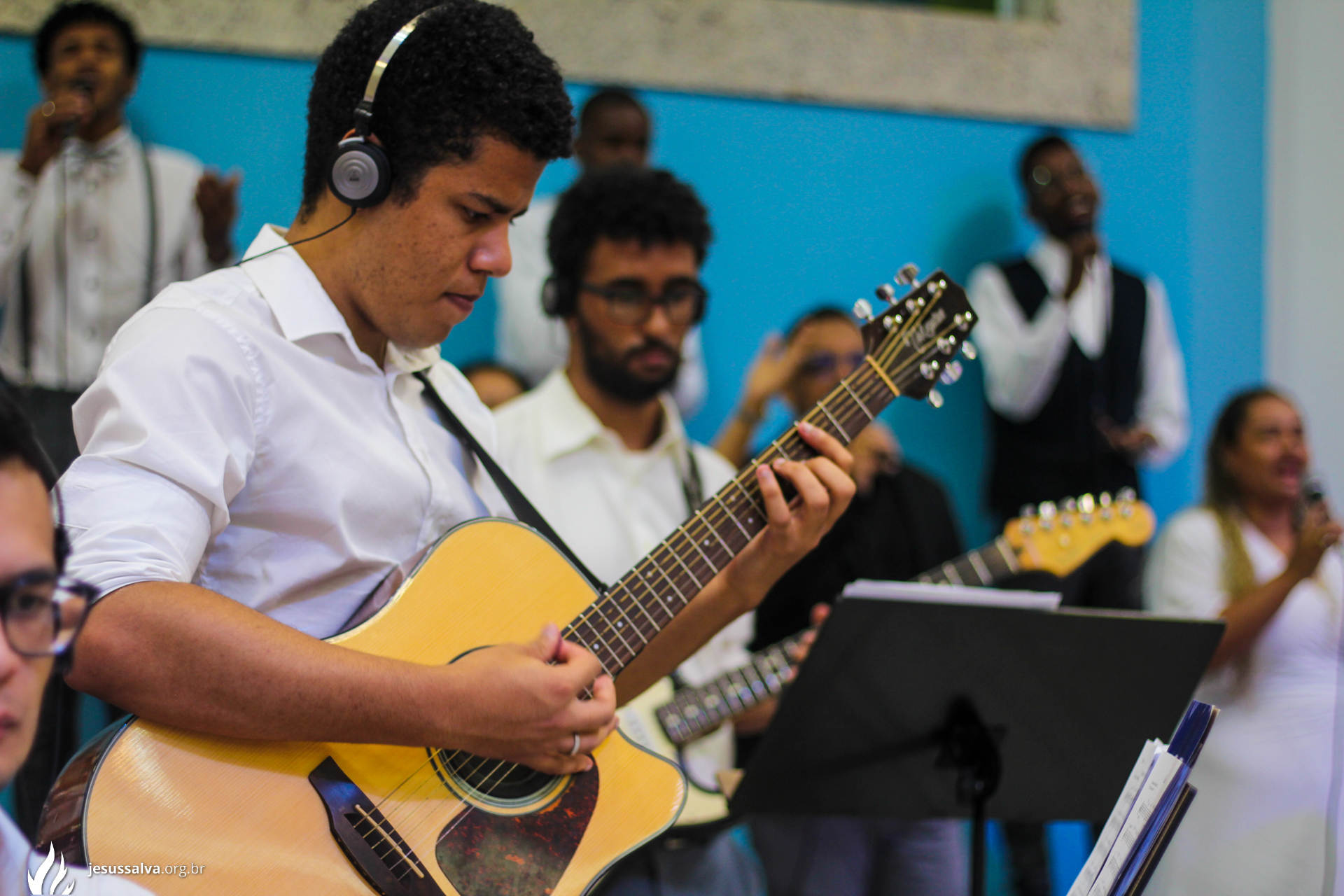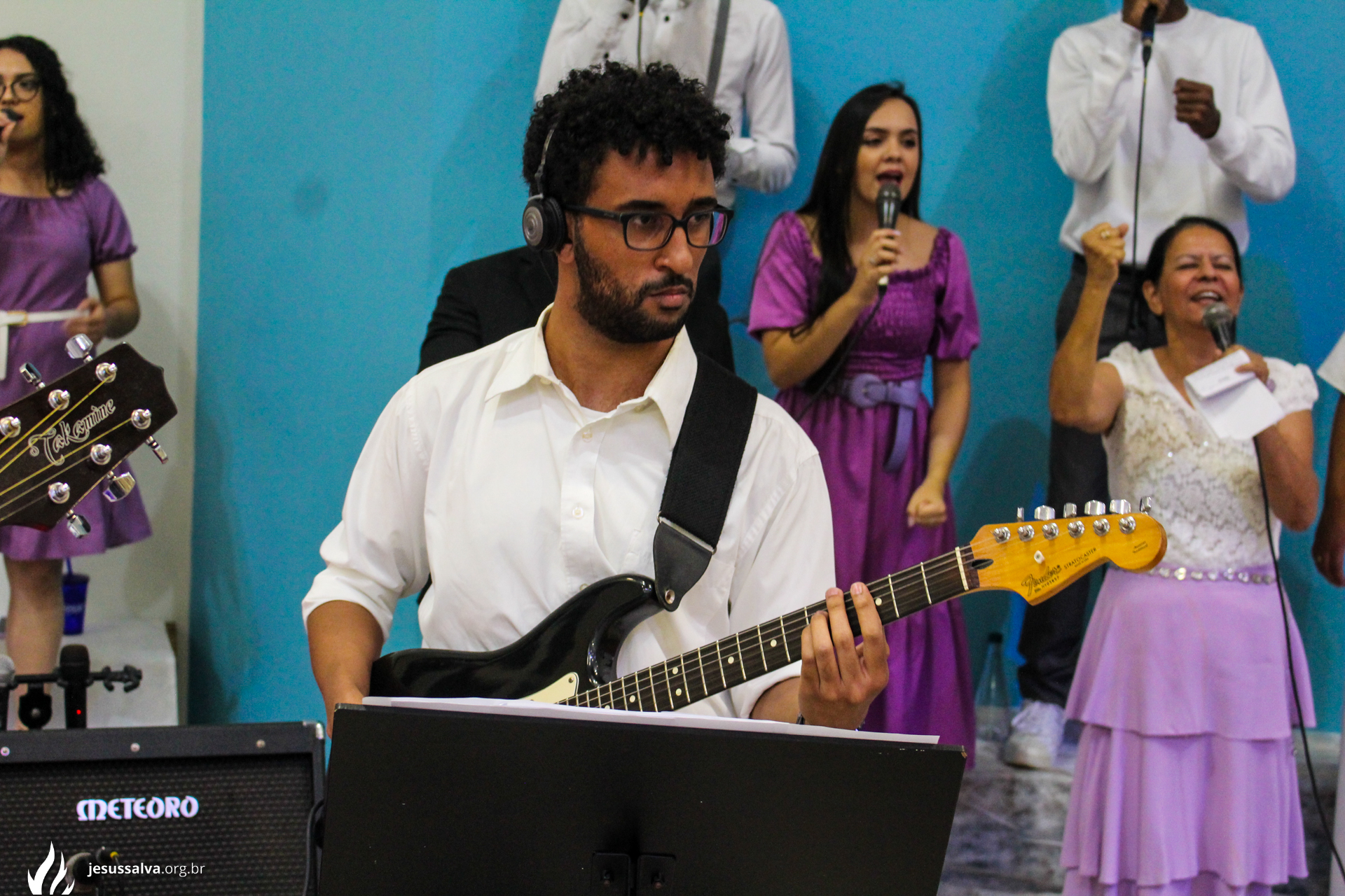 Os líderes do Departamento de Música Jairo FIlho e Felipe Adriano e o pastor presidente Orlando Dias de Souza agradecem aos irmãos que oraram e participaram da Cantata de Páscoa.