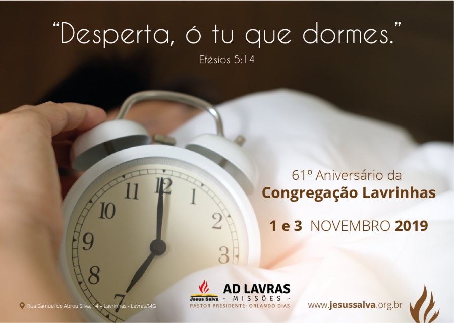 Escrito por Heider AlvarengaAcontecerá nos dias 1 e 3 de novembro de 2019 a festividade em comemoração aos 61 anos da Congregação Lavrinhas. A festividade ocorrerá na própria Congregação (Rua Samuel de Abreu Silva, 14 – Lavrinhas).