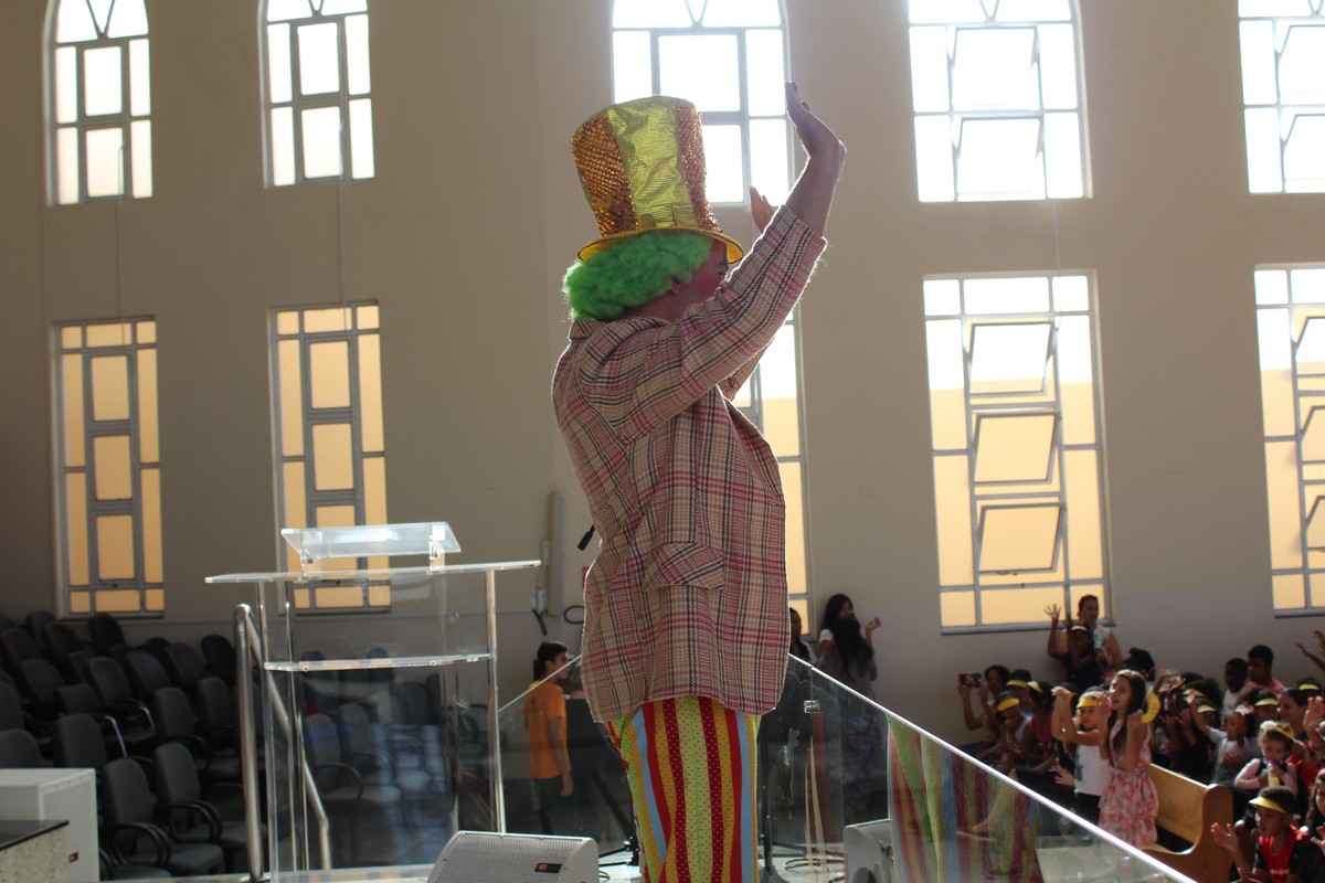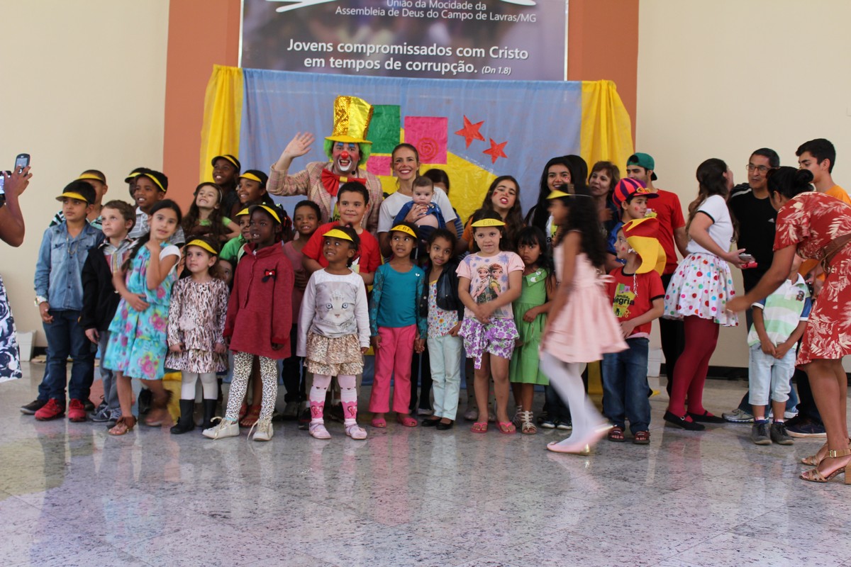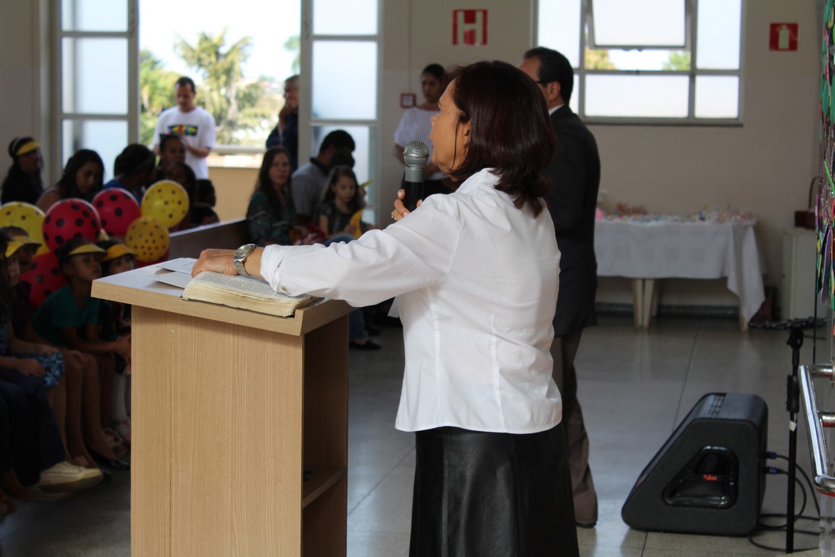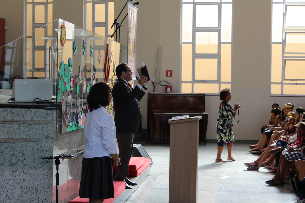 O pastor presidente Orlando Dias de Souza e a coordenadora do Departamento Infantil, Tia Neide, ficaram muito felizes com a presença de todos e glorificam a Deus pela oportunidade de trazer as crianças para aprenderem um pouco mais dos valores da vida cristã e dos ensinamentos da Palavra de Deus.
