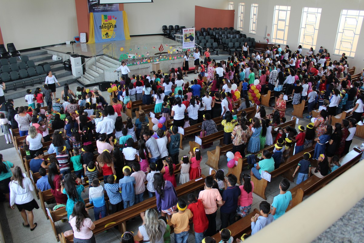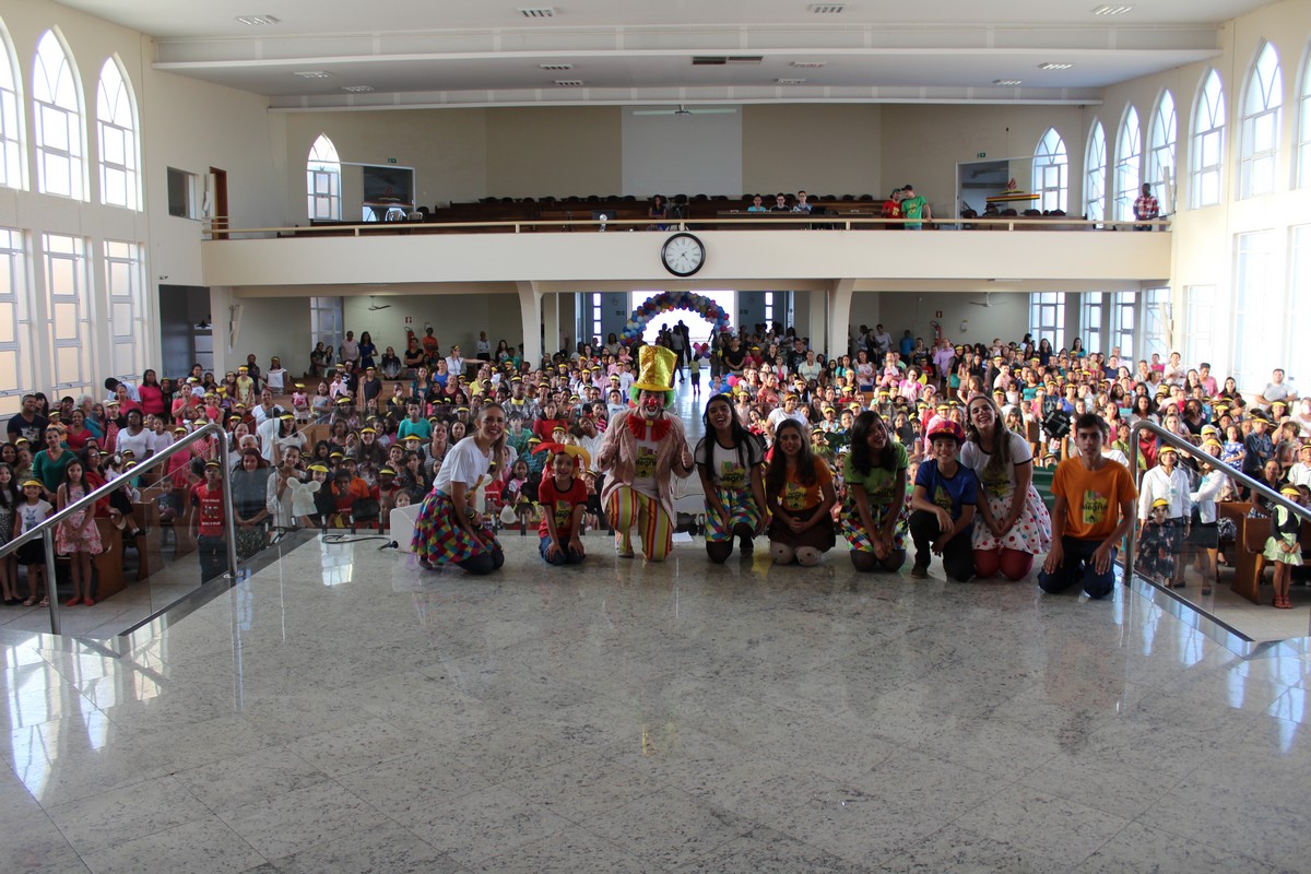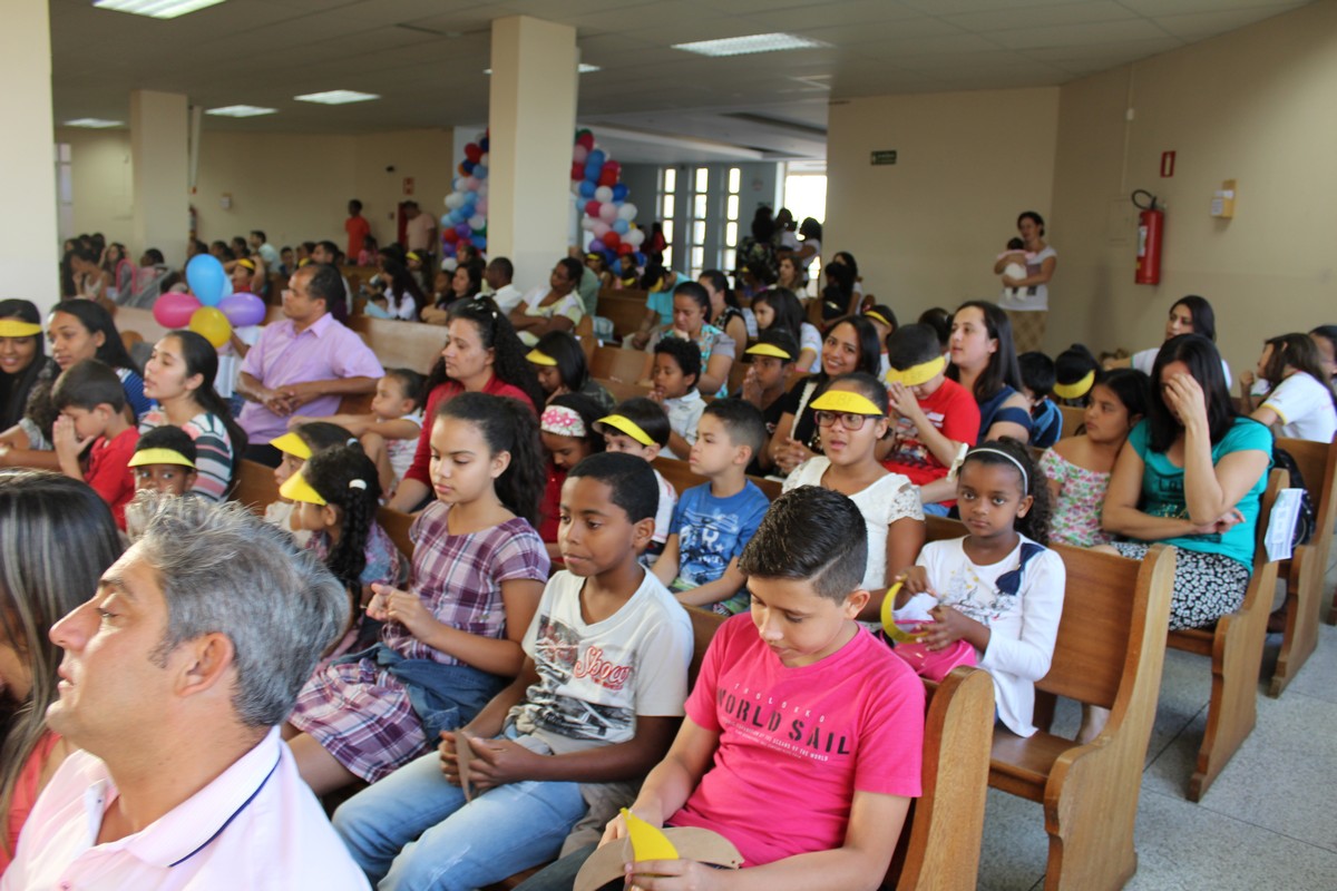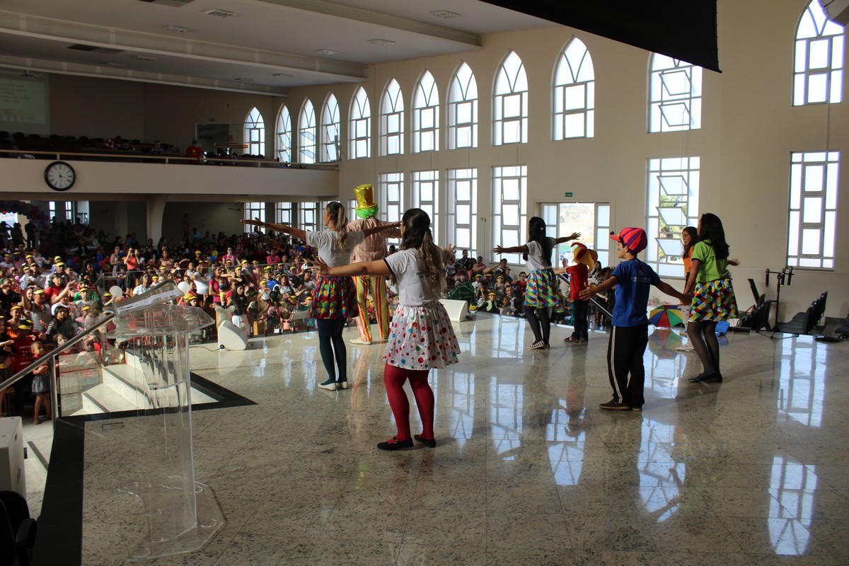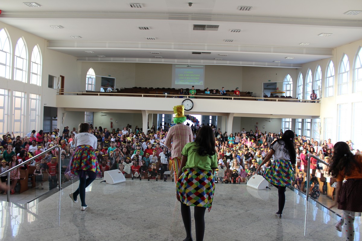 Ocorreu na tarde do último sábado (30) no Templo Sede, mais uma edição do tradicional evento de férias realizado pelo Departamento Infantil da igreja, o EBF – Encontro Bíblico de Férias. O evento contou com a presença de cerca de 450 crianças e 300 adultos, dentre eles, líderes infantis, equipe de apoio, pais e amigos.