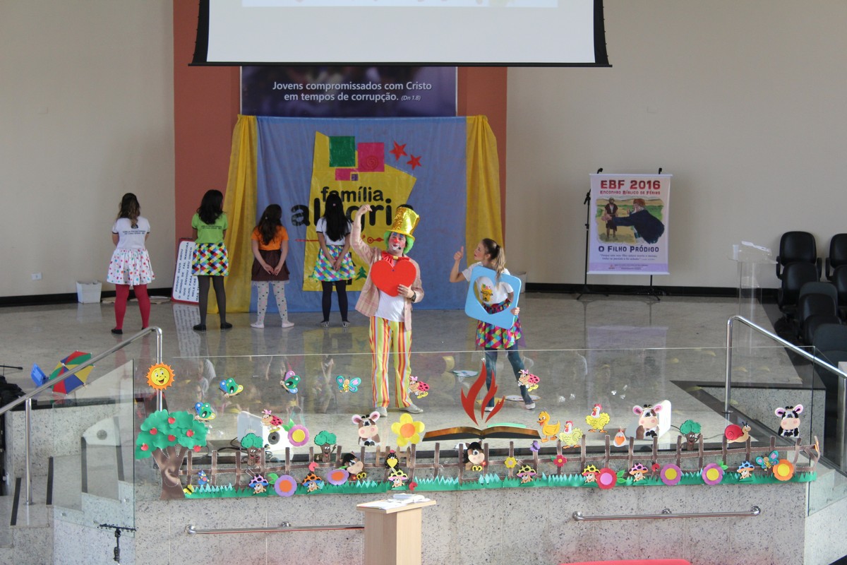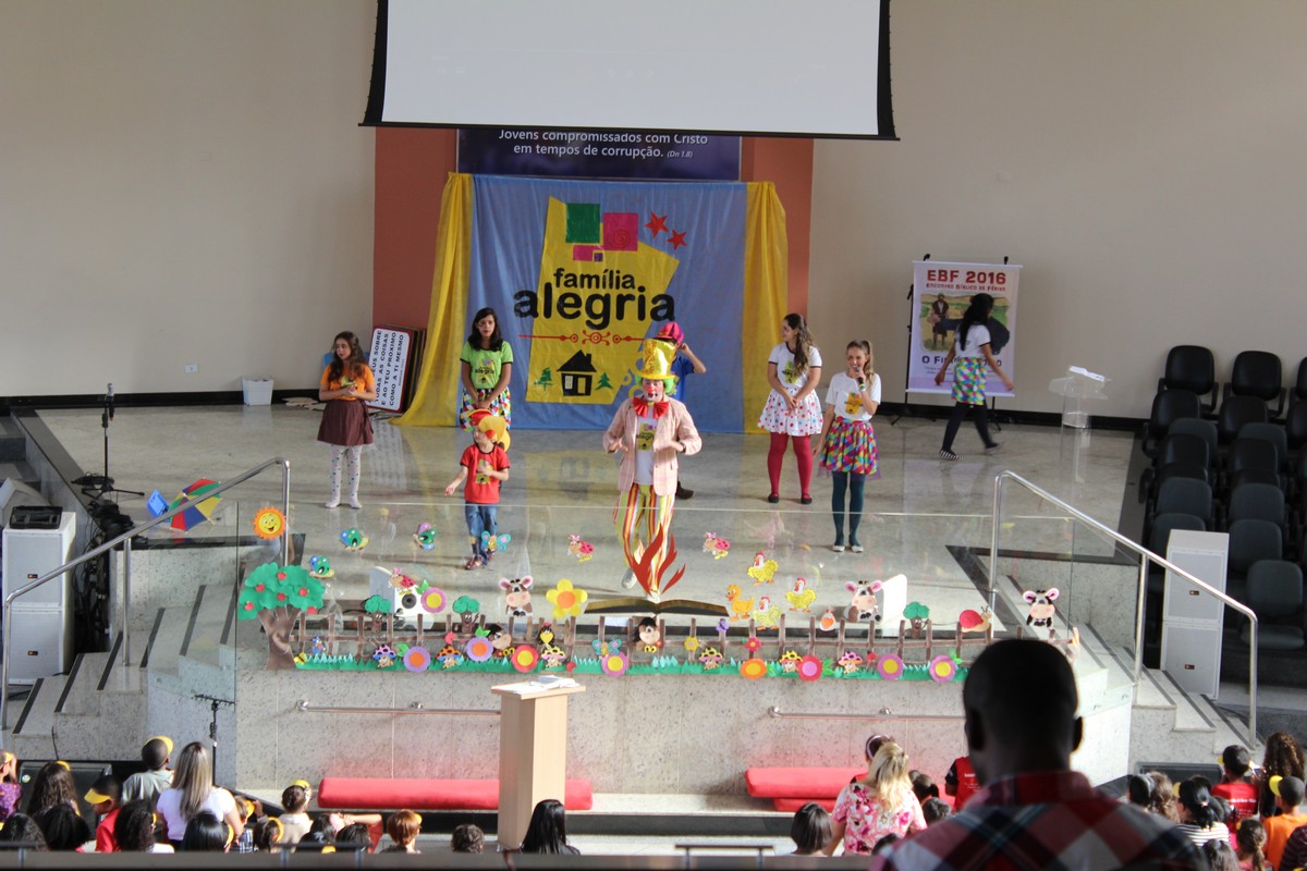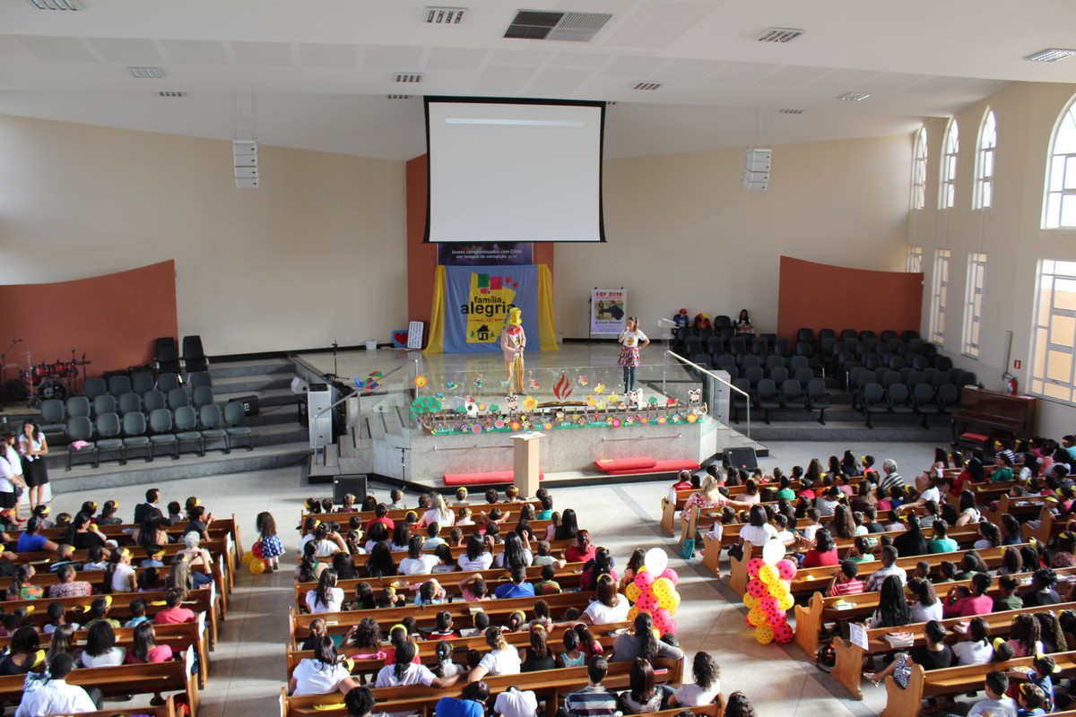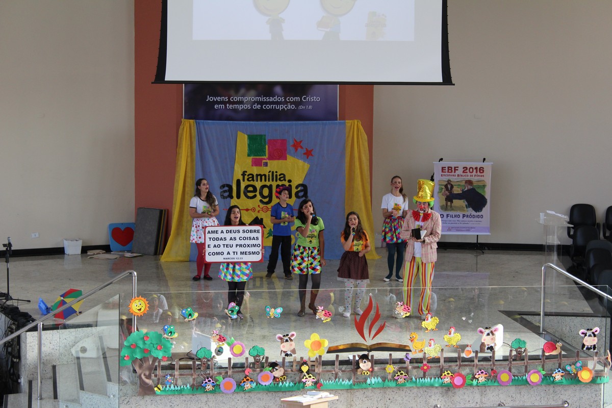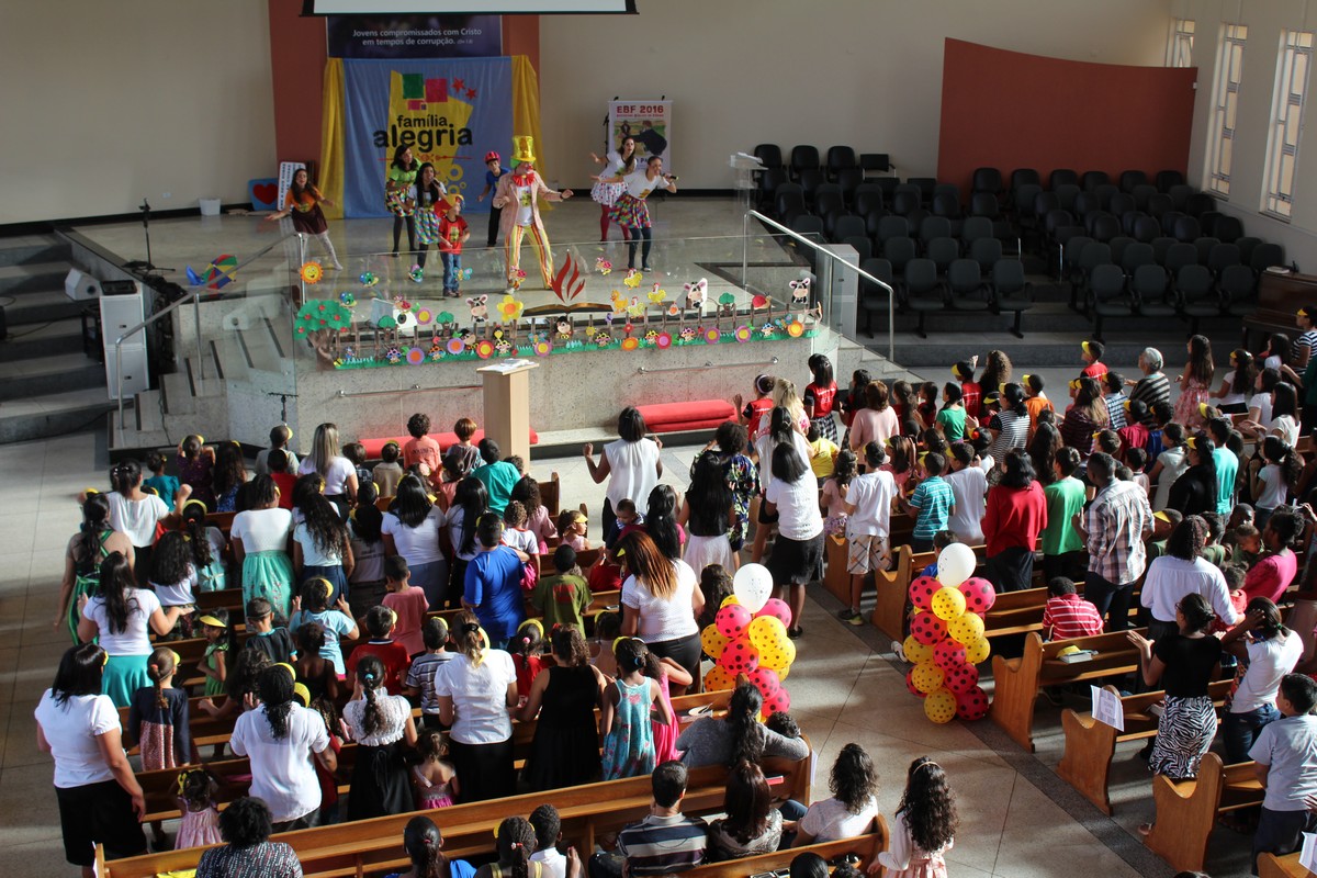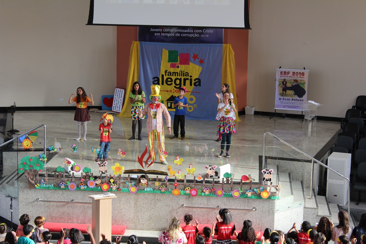 Ocorreu na tarde do último sábado (30) no Templo Sede, mais uma edição do tradicional evento de férias realizado pelo Departamento Infantil da igreja, o EBF – Encontro Bíblico de Férias. O evento contou com a presença de cerca de 450 crianças e 300 adultos, dentre eles, líderes infantis, equipe de apoio, pais e amigos.