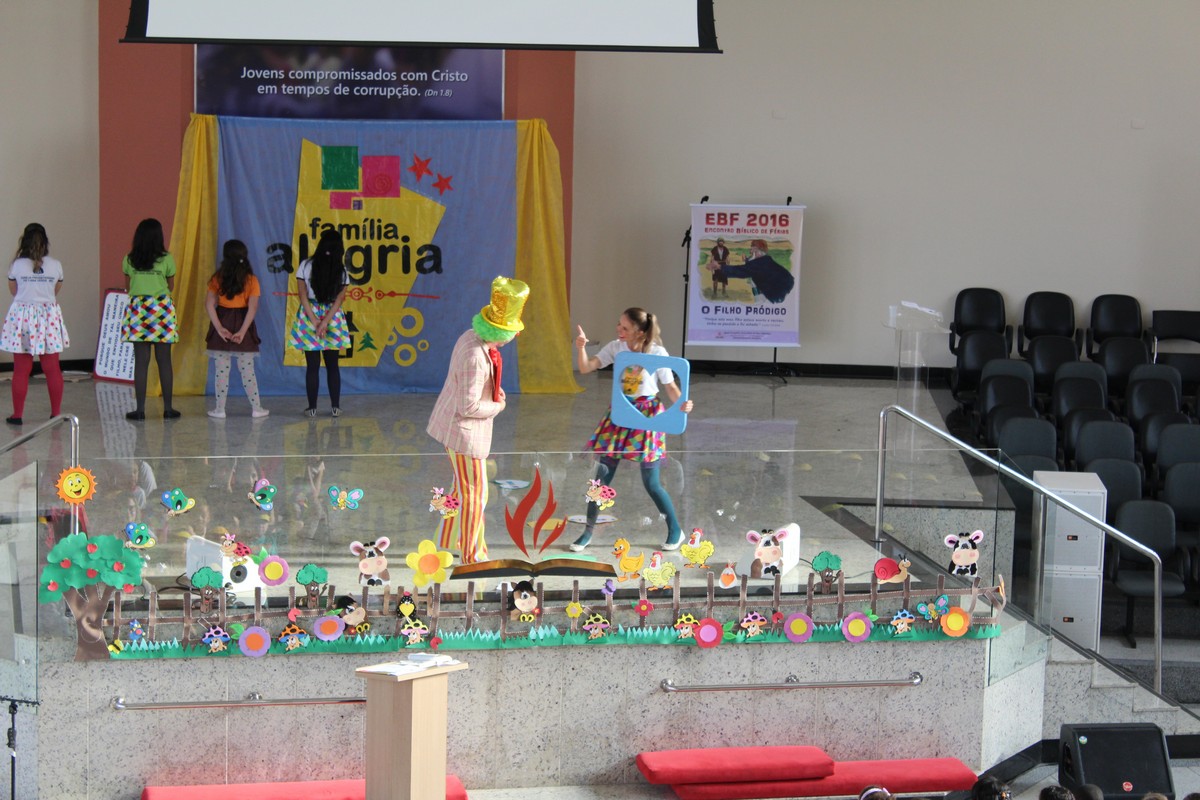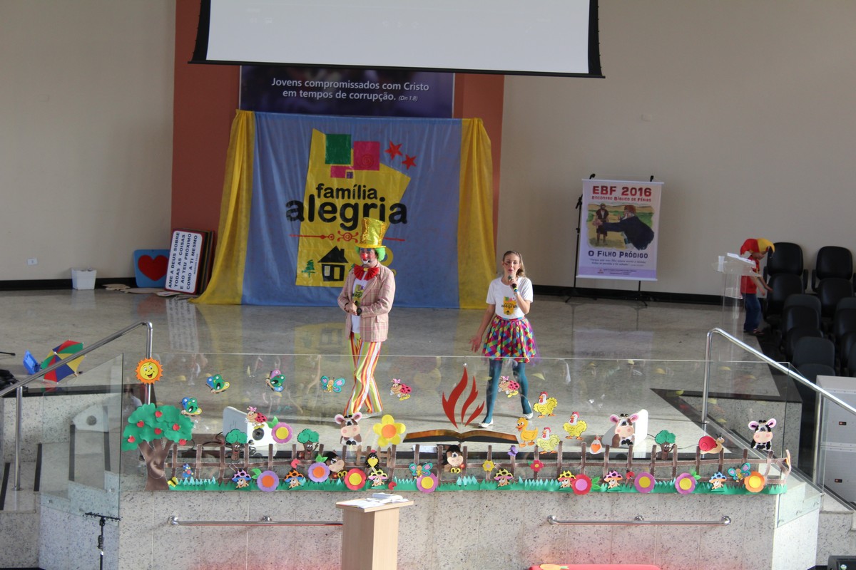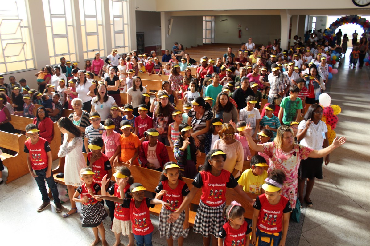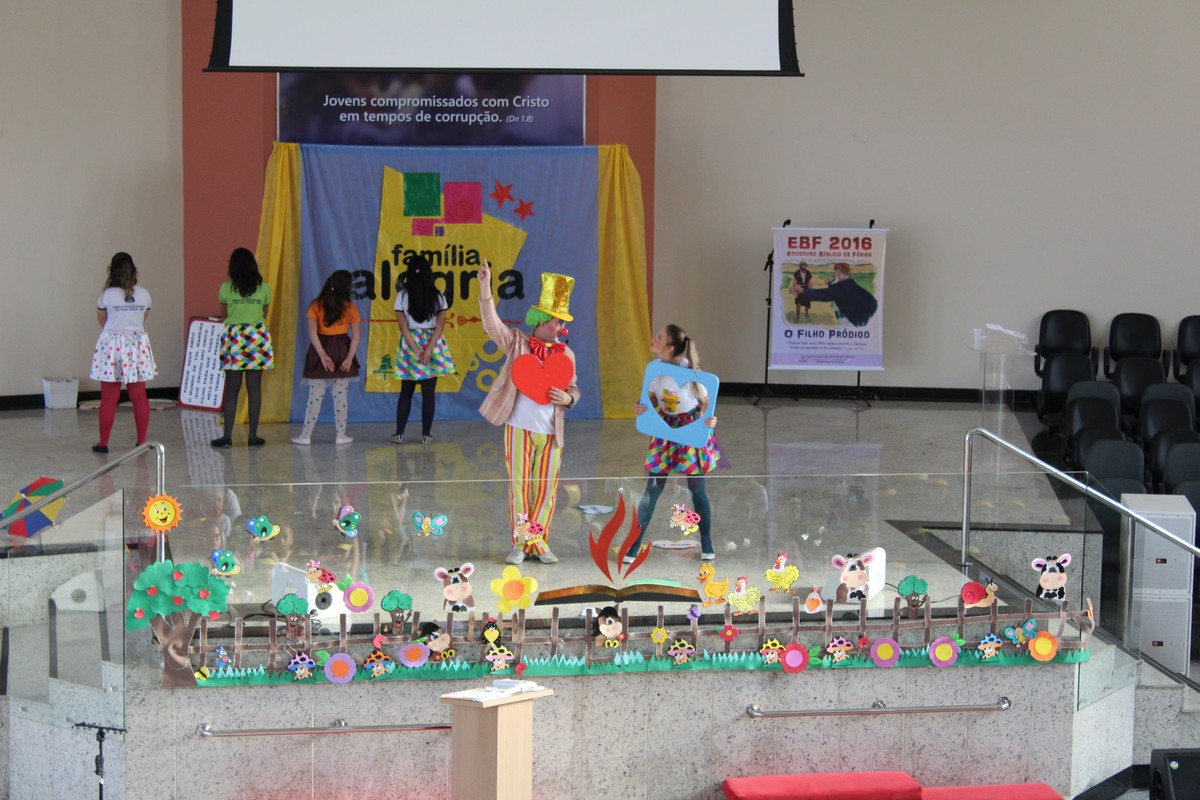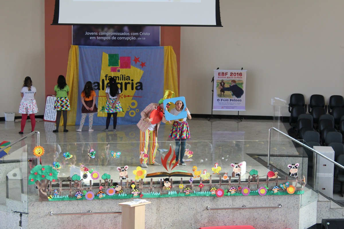 Ocorreu na tarde do último sábado (30) no Templo Sede, mais uma edição do tradicional evento de férias realizado pelo Departamento Infantil da igreja, o EBF – Encontro Bíblico de Férias. O evento contou com a presença de cerca de 450 crianças e 300 adultos, dentre eles, líderes infantis, equipe de apoio, pais e amigos.