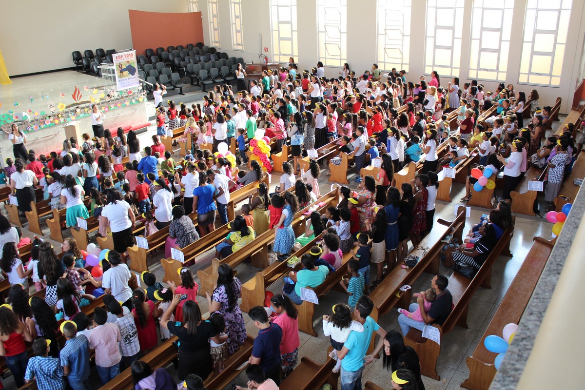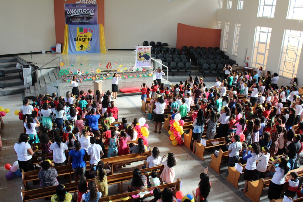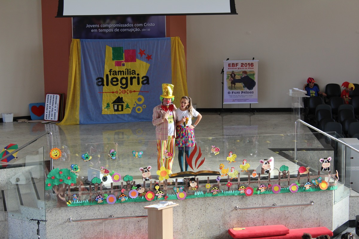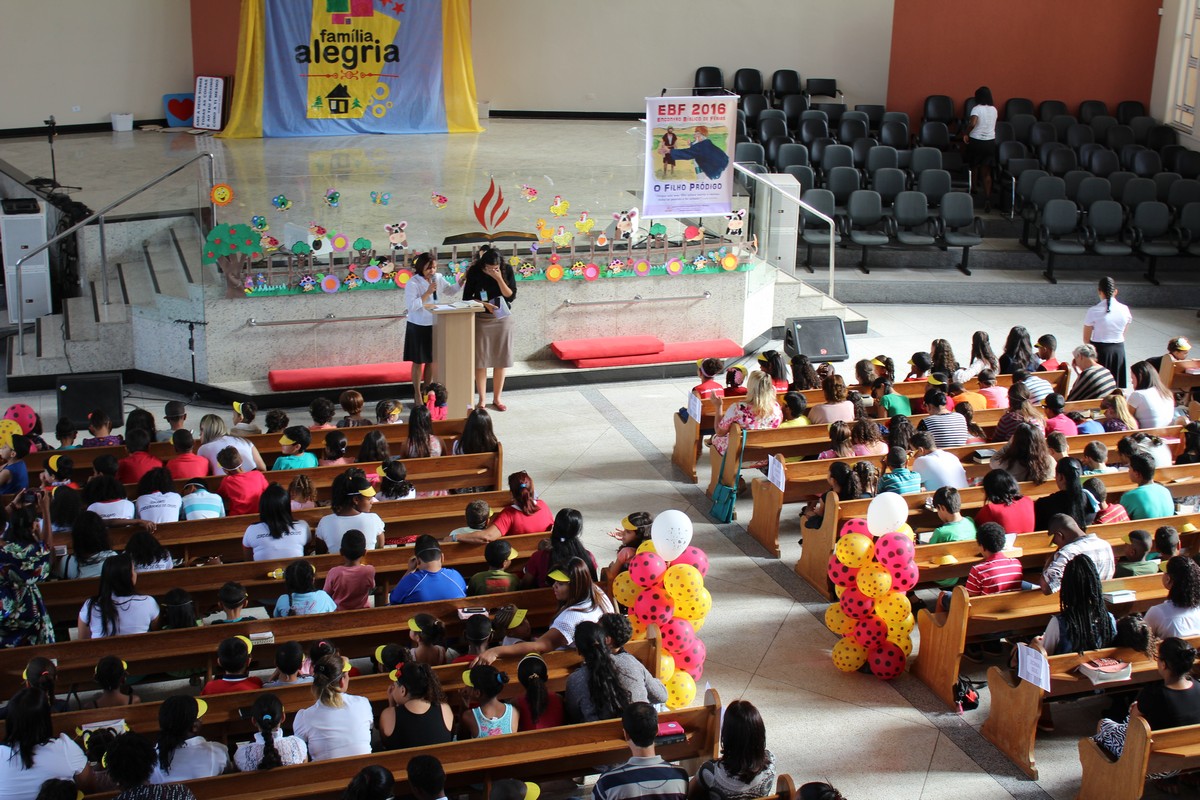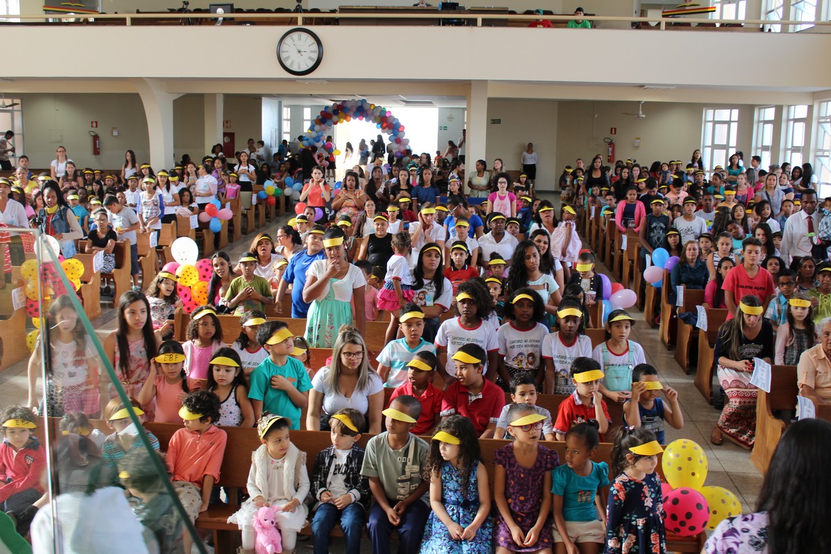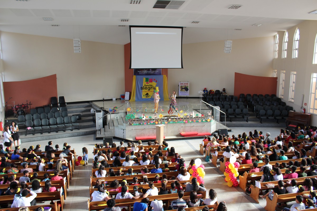 Ocorreu na tarde do último sábado (30) no Templo Sede, mais uma edição do tradicional evento de férias realizado pelo Departamento Infantil da igreja, o EBF – Encontro Bíblico de Férias. O evento contou com a presença de cerca de 450 crianças e 300 adultos, dentre eles, líderes infantis, equipe de apoio, pais e amigos.