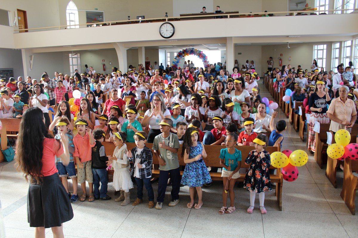 Todas as crianças também tiveram um momento de louvor, onde os grupos de cada região e o grupão infantil entoaram corinhos e músicas.