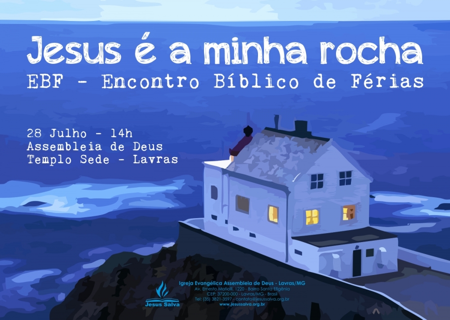 Escrito por Heider AlvarengaO Departamento Infantil da igreja tem a honra de convidar as crianças e seus pais para participarem do EBF - Encontro Bíblico de Férias. O encontro será realizado neste sábado (28/7) às 14h no Templo Sede.