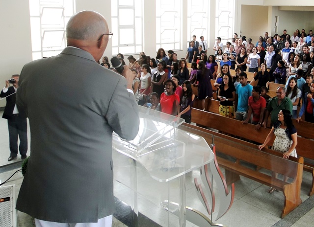 No culto de batismo o Pastor Cerqueira trouxe uma mensagem sobre a importância de perserverar na fé, a exemplo do que ocorreu na igreja primitiva, conforme relato do livro de Atos.