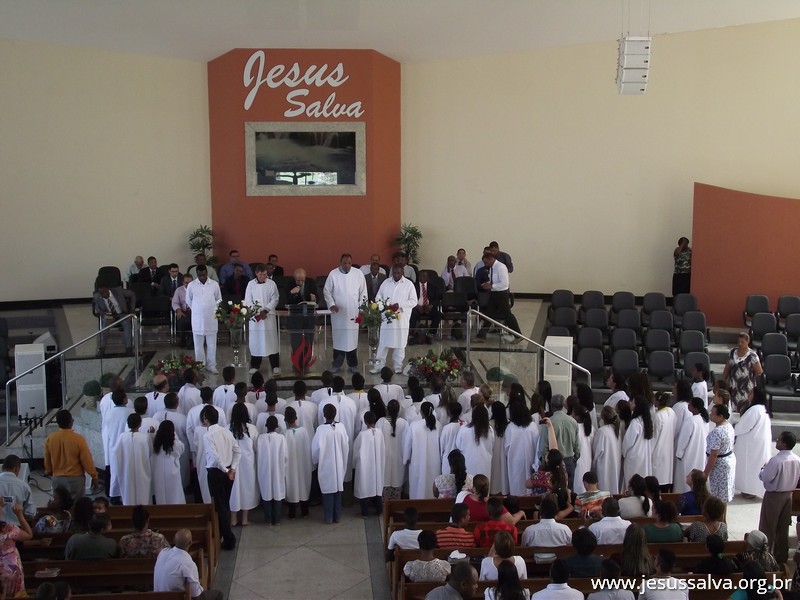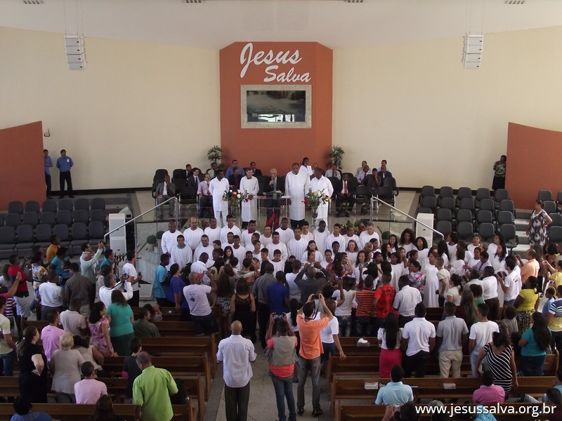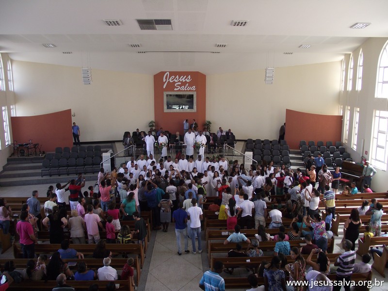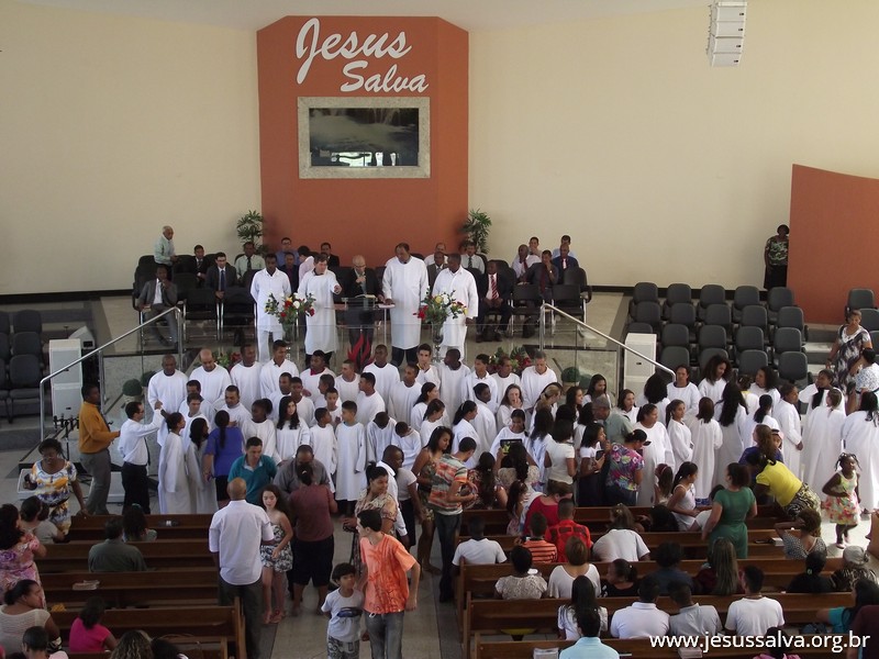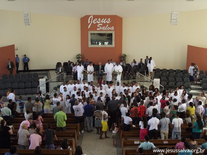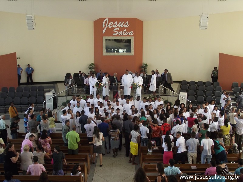 Escrito por Heider AlvarengaNo último domingo de 2014 (28), ocorreu no Templo Sede da Assembleia de Deus em Lavras o Batismo nas Águas de cerca de 60 novos membros das congregações e das igrejas do campo. Com muita alegria o Pastor Presidente Antonio Cerqueira apresentou os novos membros à Igreja, estes que se dirigiram ao tanque de batismo e foram submergidos nas águas, conforme a Palavra de Deus nos ensina.