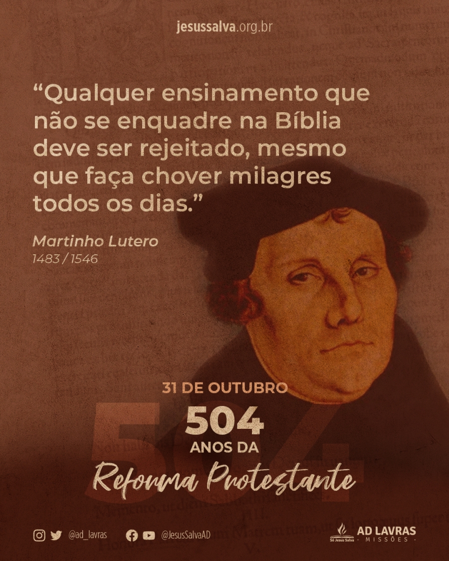 Neste domingo (31) se comemora os 504 anos da Reforma Protestante, que teve início através das 95 teses de Martinho Lutero, fixadas nas portas da Igreja do Castelo de Wittenberg, na Alemanha. A iniciativa de Lutero mudou para sempre o Cristianismo, transformando a sociedade.